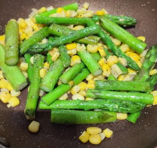 旬を食すコーンとアスパラのバター焼きです!今日の夕食の仕込みです春のアスパラはとても美味しいですみお