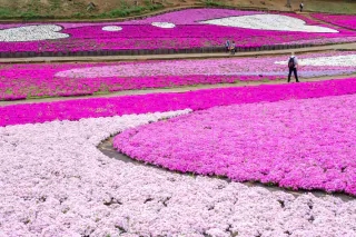 武甲山を望む丘陵地に、『10品種 』、『 40万株以上』にも及ぶ芝桜の絨毯が一面を埋め尽くす。そんな花畑の植栽面積は『約17,600m²』と関東有数の規模を誇る。