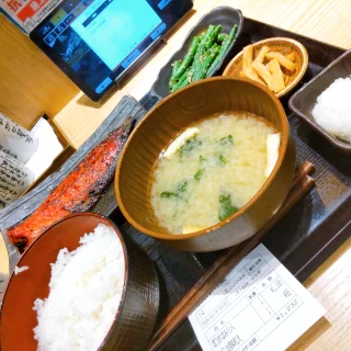 朝はいつも「鯖文化干し定食」なので、
