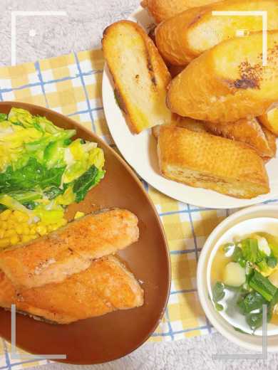 🌸鮭のムニエル 春キャベツとコーンのバターソテー