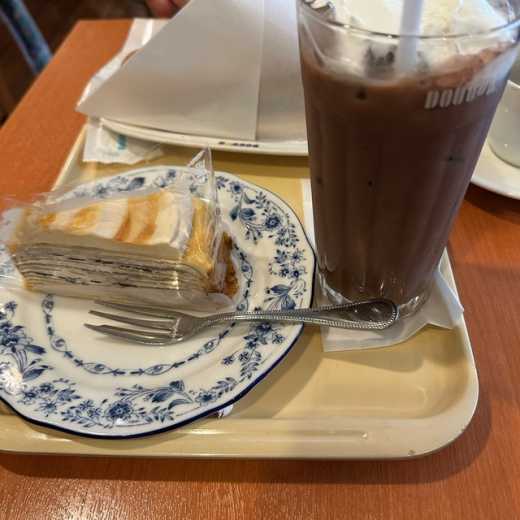 今日の、ゆなのランチはミルクレープ&アイスココア❤️ドトールのココアだいちゅきちゅき🩷そして今からちょこっとだけ犬のイベントに行ってきます🥰