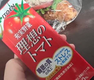 最近このトマトジュースお気に入り!さ!今日もお仕事がんばろーあんあん