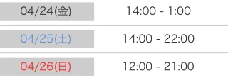 明日4/24(金) 14時〜25時