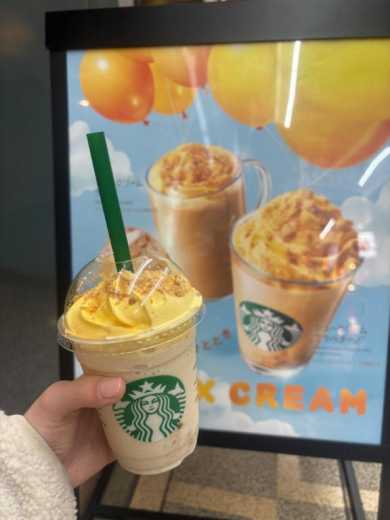 先週の金曜日からシュークリームフラペチーノというのが始まっていて、インスタで見つけてどうしてもこれは飲んでみたい!!