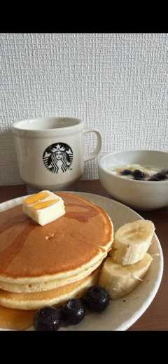 朝ごはんはホットケーキ食べてきたよ