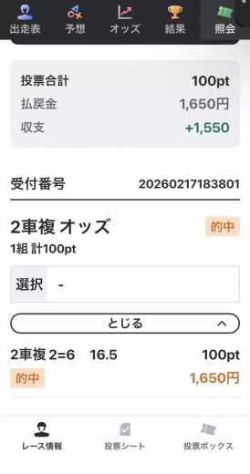 競輪で2車複100円一点がけ