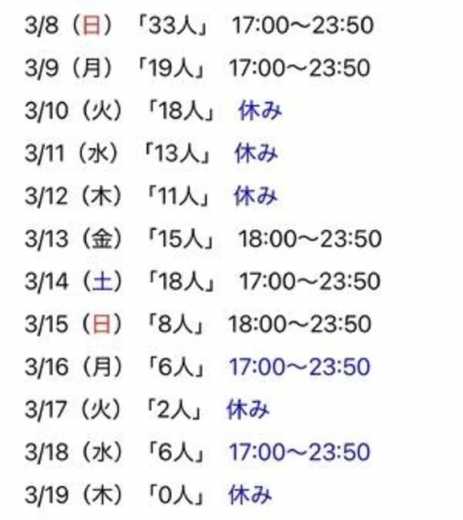 今のところ3月半ばあたりまでの出勤予定です₍ᐢ‥ᐢ₎ ♡
