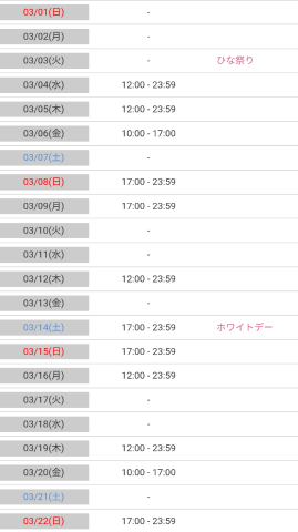 3月のシフトがちょっとだけでました〜?