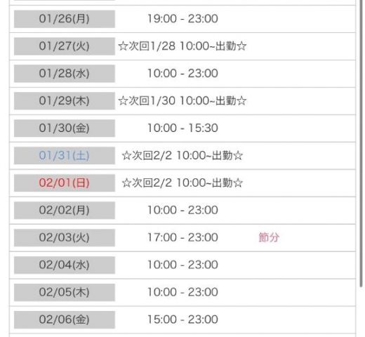 出勤予定🗓