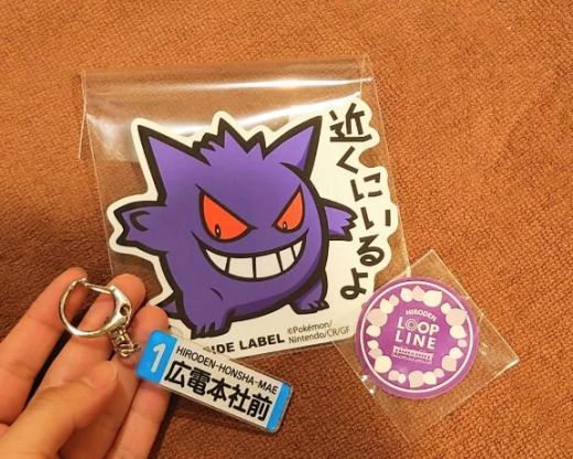 さっき来てくれたらお兄さんから、シールと広電のグッズいただいたの!