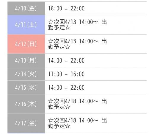 出勤予定🗓