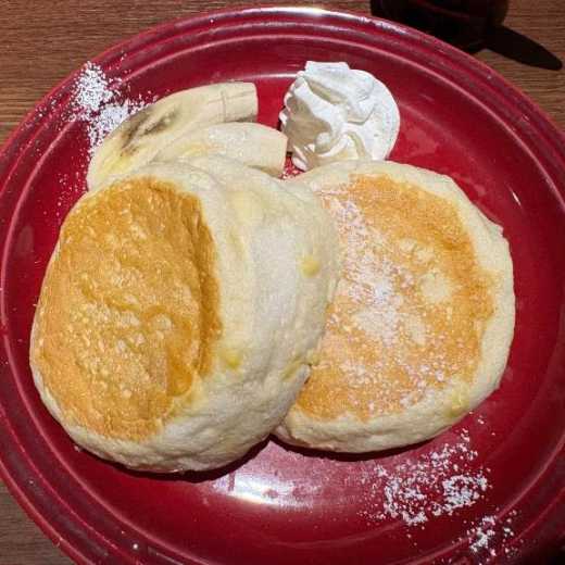 ここのパンケーキふわふわすぎてすぐ形崩れちゃった🥞