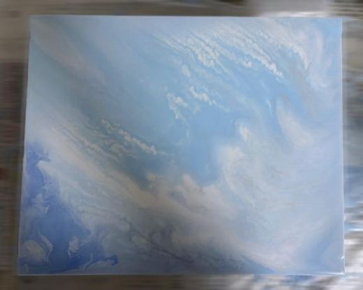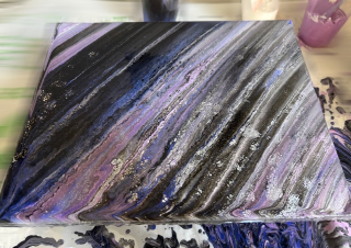 キャンバスに色々な絵の具を流し込んで、絵の具の流動性を楽しみながら作る作品です??