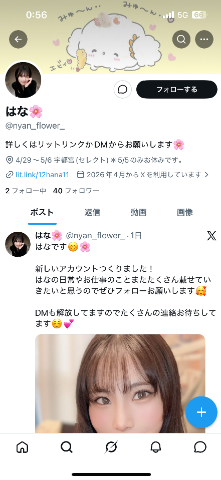 はなの新しいアカウントは