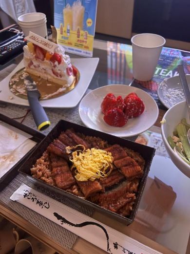 ケーキやイチゴ、手作りサラダ、うなぎ弁当も