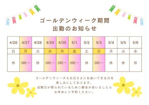 GW期間中のご予約が