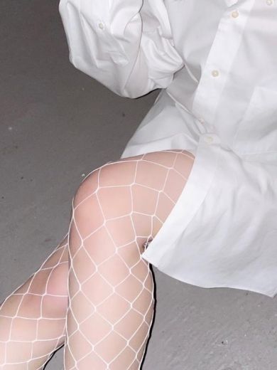 大きめのシャツも網タイツも