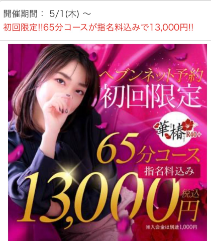 65分(指名料込み)の¥13000