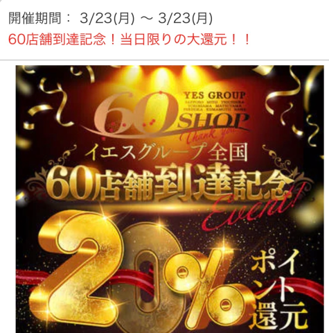 ?60店舗達成記念?20%還元??