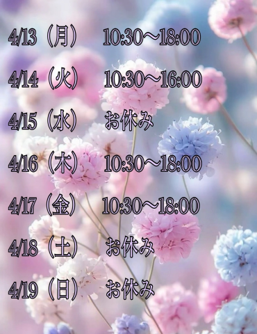 火曜日は16:00までとなります