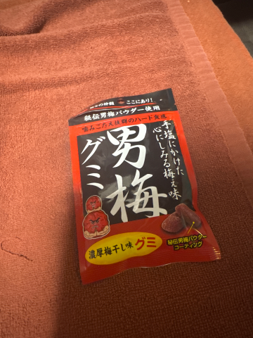 折り返し♪今日のおやつは男梅グミ!!男梅サワーもだいすきです♪?
