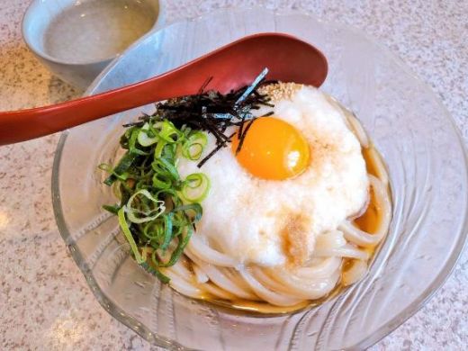 お写真は、お昼ご飯の山かけうどんです〜?
