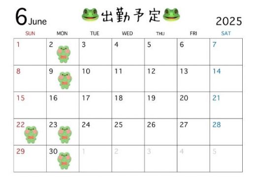 来月の出勤です