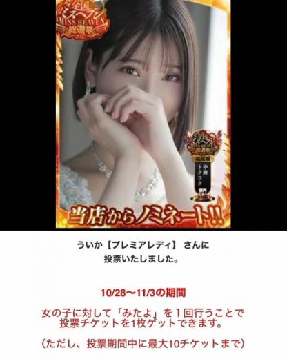 10/28~11/3 ミス●●●総選挙 投票期間中ですロイヤルリップスファンの皆様、投票して応援しましょう〜