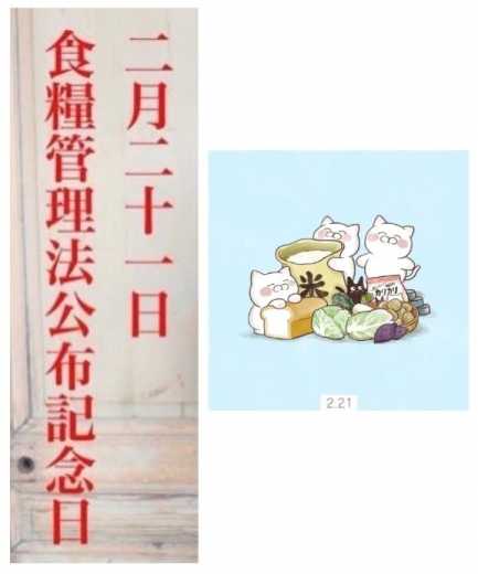 を目的とした「食糧管理法」が1942年2月21日に公布されたことにちなんで記念日が設けられております![]()