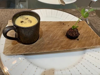 前菜にトリュフとじゃがいものポタージュと