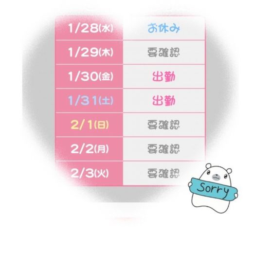 次回出勤予定は、30日となってます✨️
