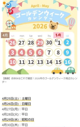 ゴールデンウィークのスケジュール🎏🗓️