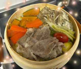 切って入れて蒸すだけですけどお野菜も沢山食べれて栄養素もしっかり、お腹いっぱい食べても罪悪感少ないのでお勧めです![]()