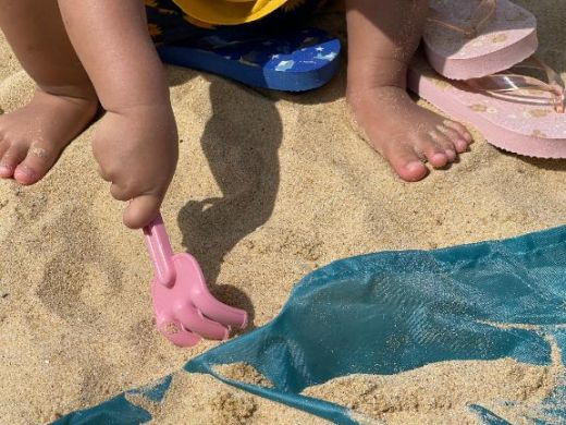 砂浜では大はしゃぎ!走り回って、転びそうになるたびにミンが飛んでいって抱きとめて…