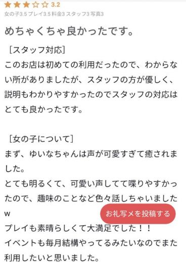 ゆいなです口コミ書いてくれてありがとうございますまたよろしくお願いします