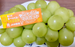 ↓大好きなシャインマスカットを頬張る?