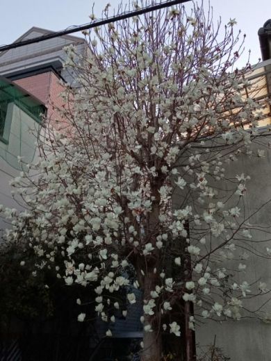 バ先の通勤路にあるコブシの木が満開でした\( *´ω`* )/