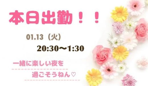 本日(火)20:30〜1:30で