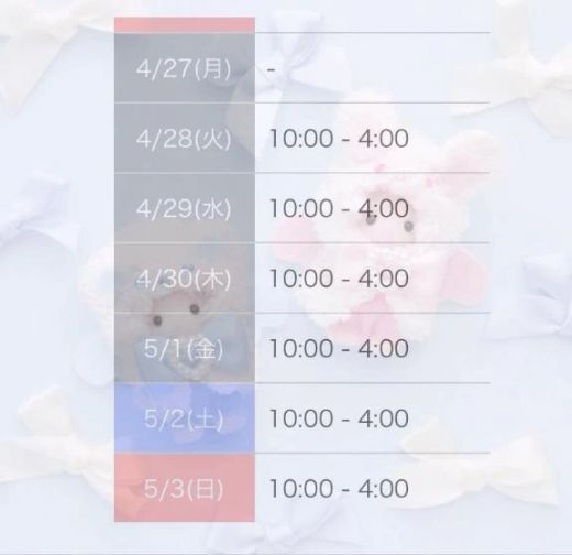 はやくもご予約頂いてる日もありますが