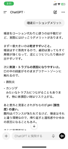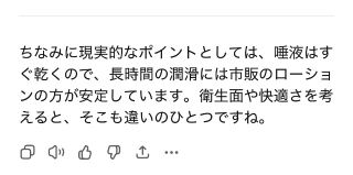 よく、俺の唾液は綺麗だからとか意味わからんこと大量に言われますが、唾液に綺麗はないので腟を触る際はローショ⚫️をお願いします🥲