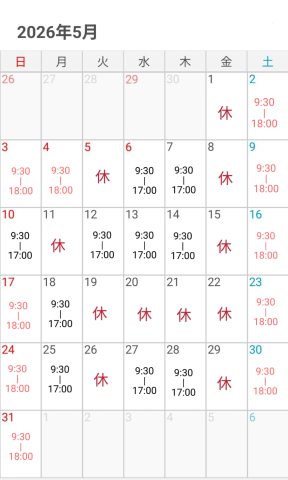 5月の出勤予定です♪