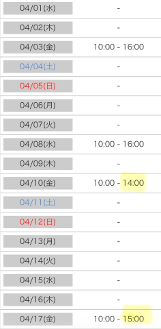 4/24(金) 10:00- ?16:00