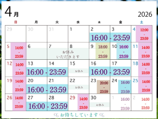 当日やもちろん空いてるお時間などに