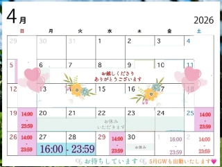 🧡 4月 🌸出勤予定のおしらせです🧡