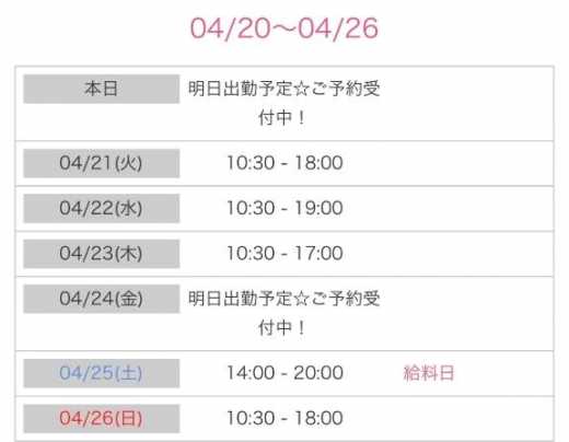 今週の出勤予定🗓️
